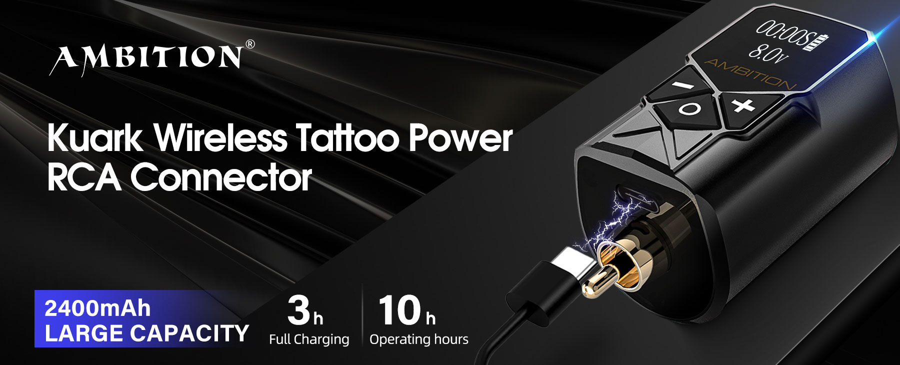 The simplicity and portability opration of Ambition wireless tattoo power will help you to conquer your tattoo.
