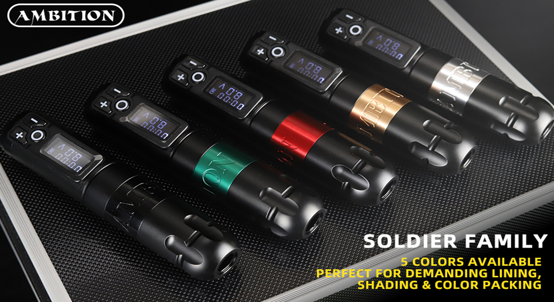 - About Motor: Ambition rotary battery tattoo pen machine built-in Japan Corless Motor, 10V - 9000RPM. More powerful, low skin loss, fast coloring, no hot for long time working.